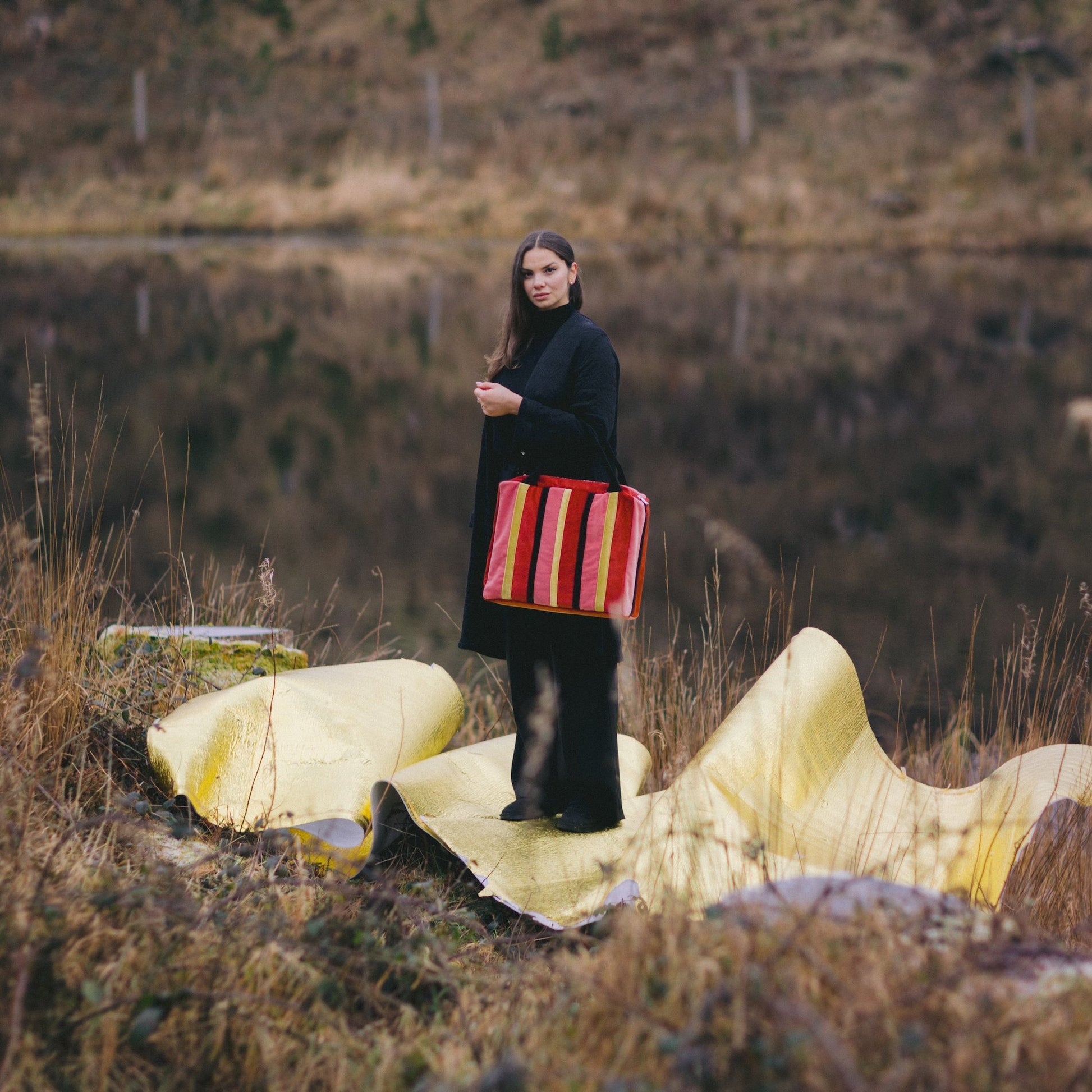 The HARLEQUIN Travel Bag is another playful addition to our oversized tote collections. Features velvet striped panels in a vibrant colour-way.
