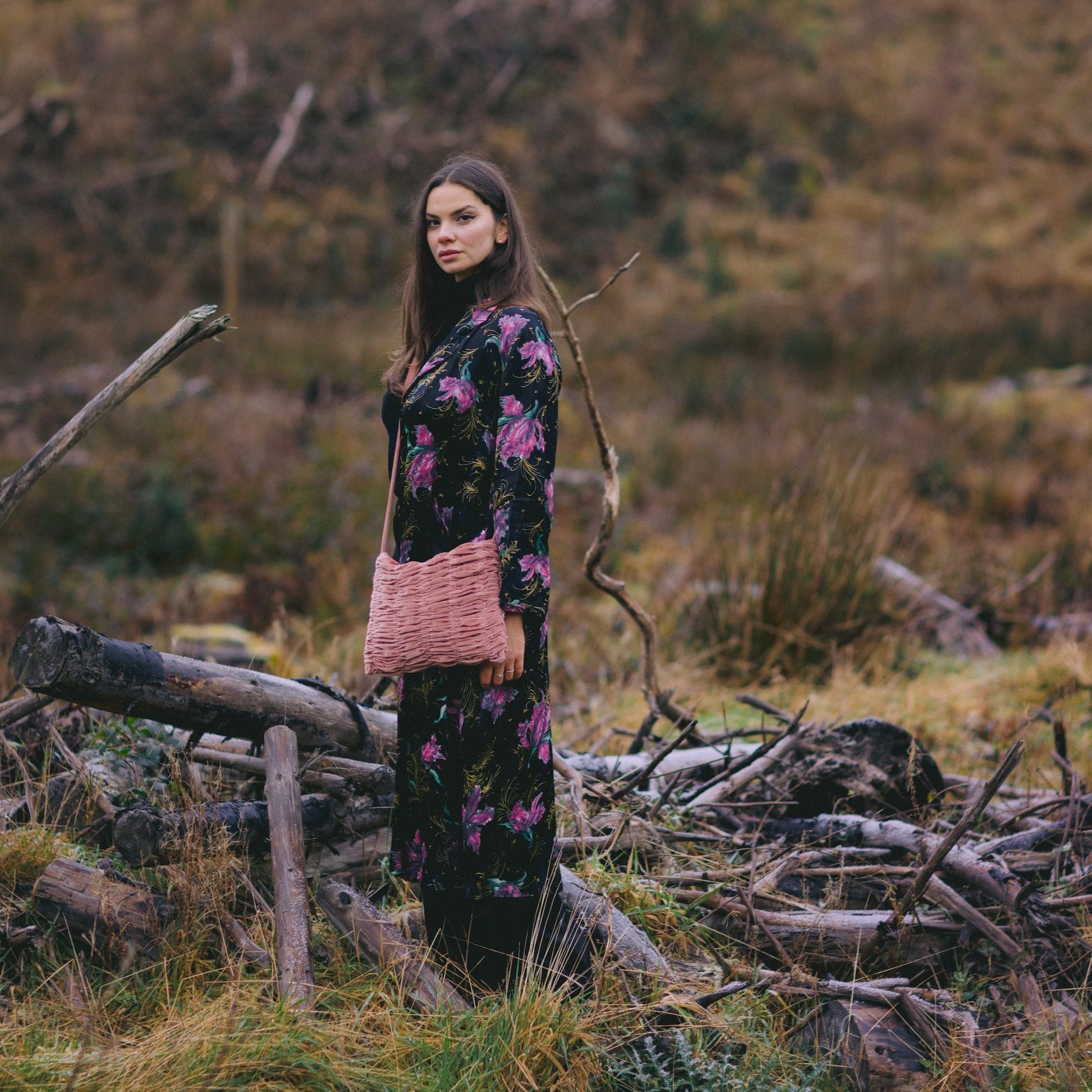 Features an internal pocket with velvet trim. Straps are perfect for over-arm and crossbody. Completely flexible for all heights and sizes, this long strap can be tied in a bow on the shoulder or back to the wearers requirements.