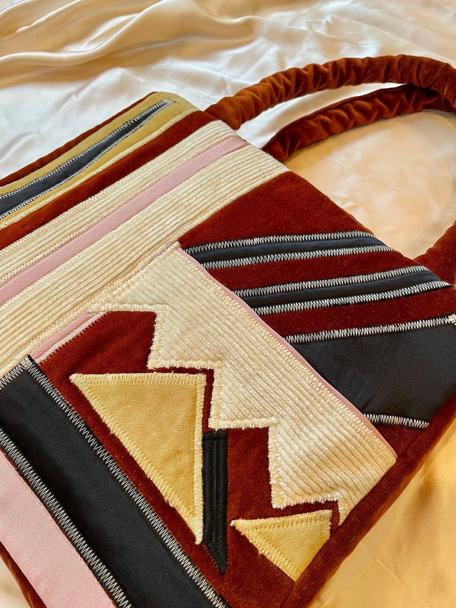 REUSE & RECREATE: The textiles we use in our collections come from a range of sources which aim to reduce our environmental impact. We primarily use vintage and antique textiles. We also utilise salvaged and remnant fabrics from the fashion and interiors industry. As well as dead-stock fabrics for lining.