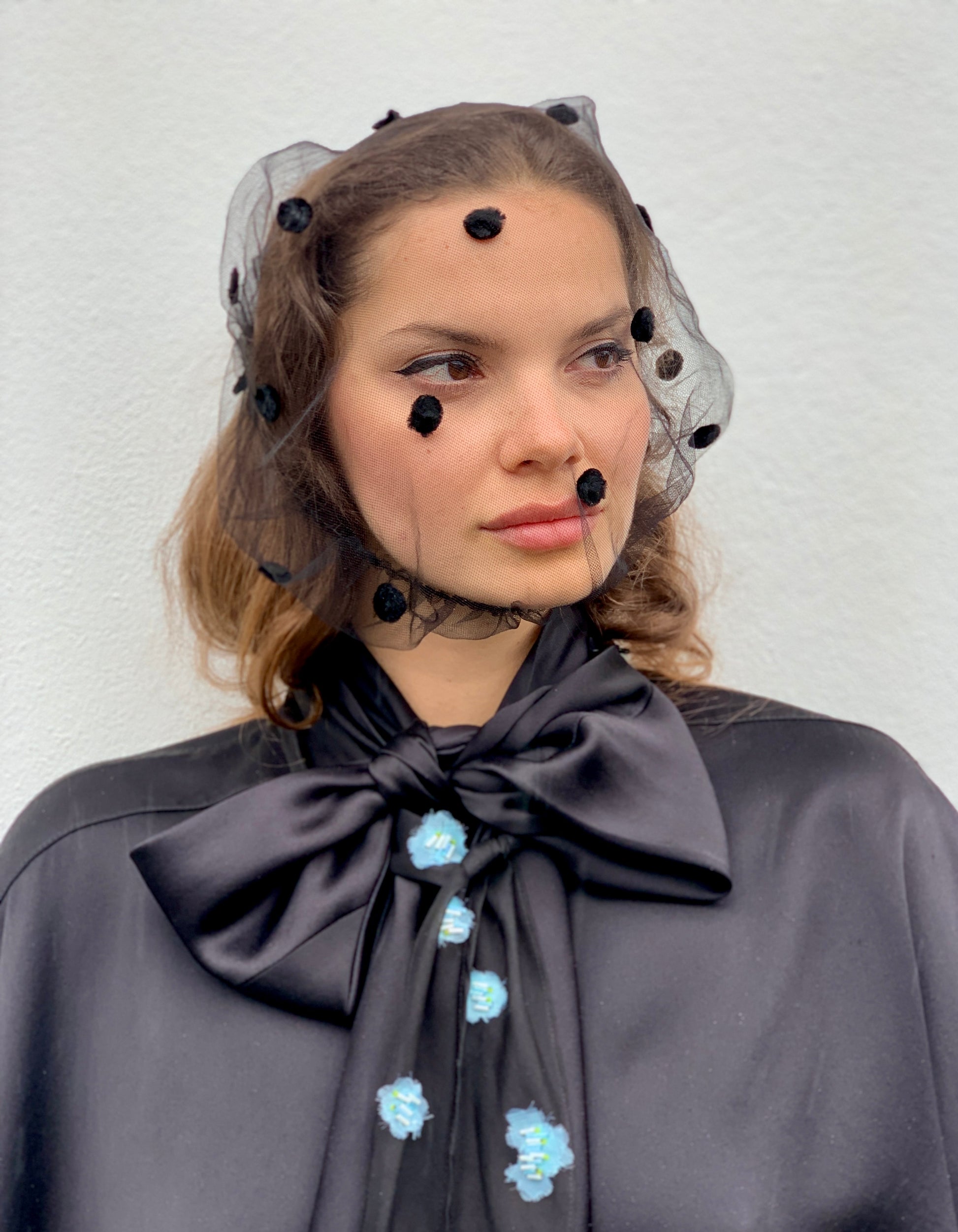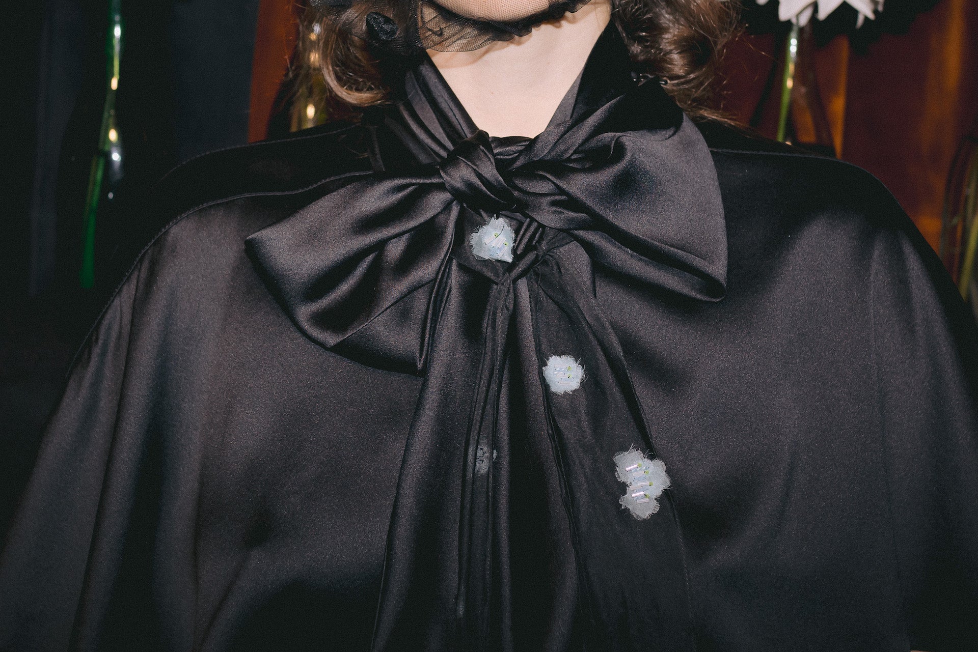 Crafted from a sumptuous heavy double-faced silk, it boasts a beautiful weight that adds to its opulence. Features a substantial necktie which can be wrapped high on the neck for a dramatic look. Alternatively tie it in an oversized bow for a more playful slant.