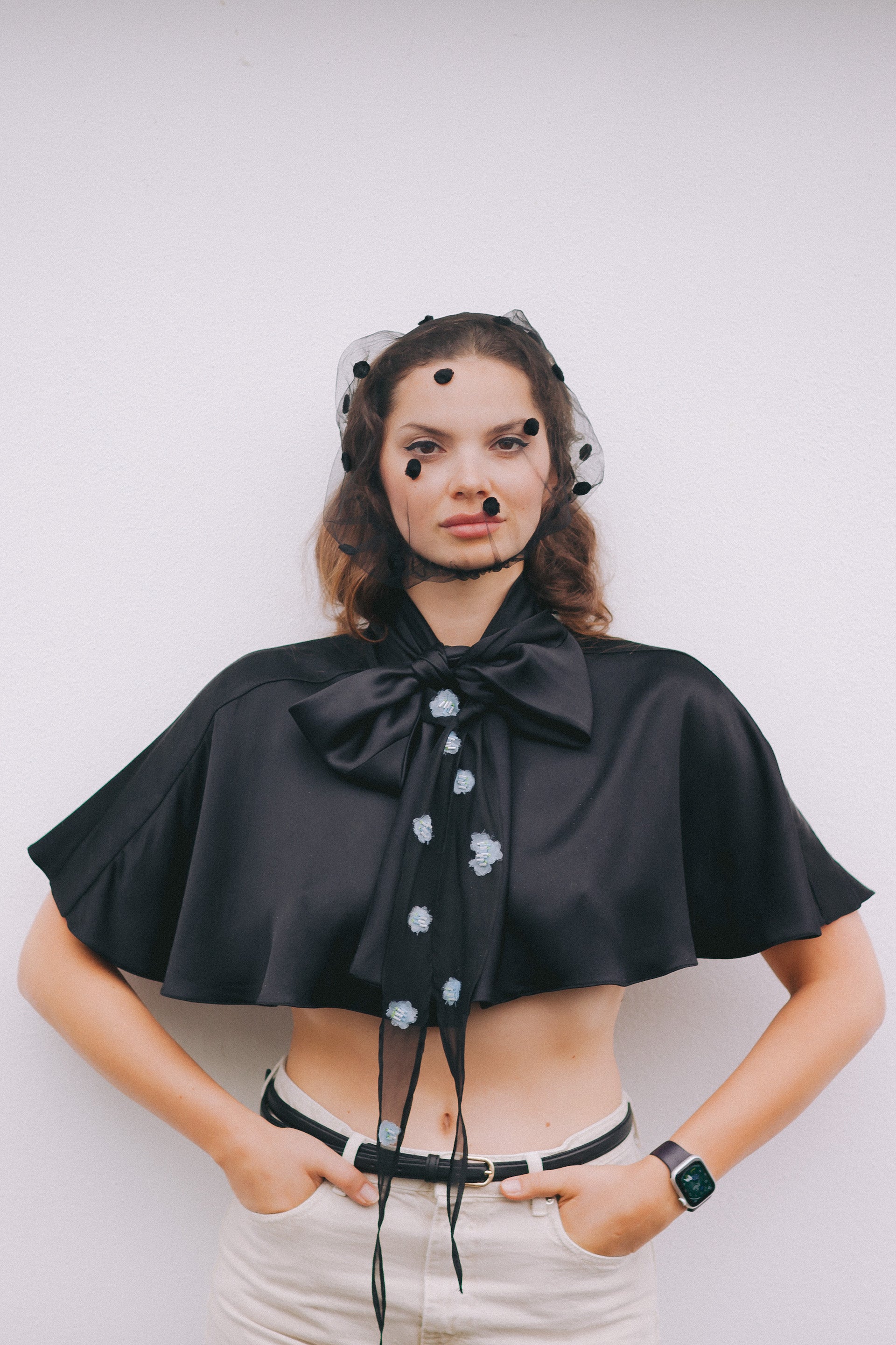 The CROBH cape can be worn as a standalone piece for a slick & elegant occasion look. Or layered over a T-shirt and jeans for a more casual take.