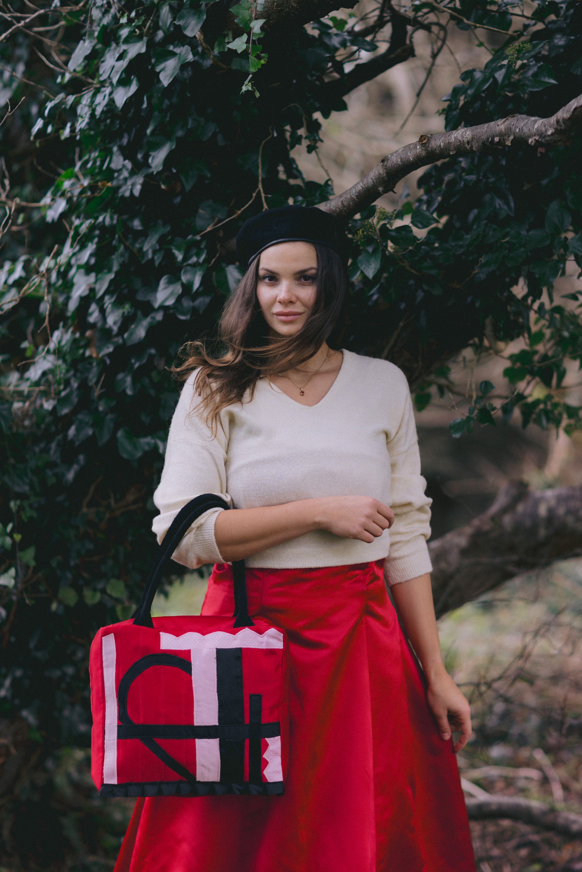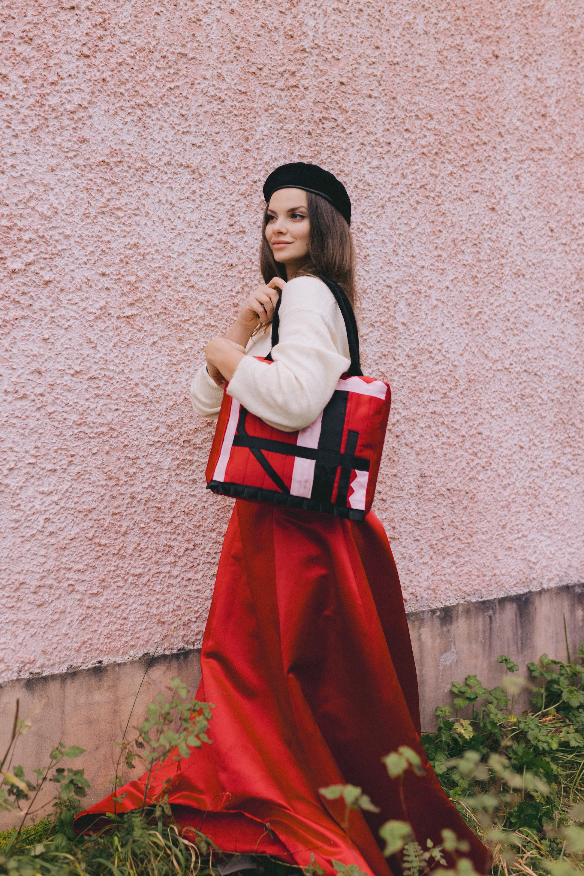 The KRASNER Bag is inspired by the artwork of American Abstract expressionist Lee Krasner. We are drawn to her vibrant and dynamic artwork, most notably the color-popping collages and assemblages created from found pieces.