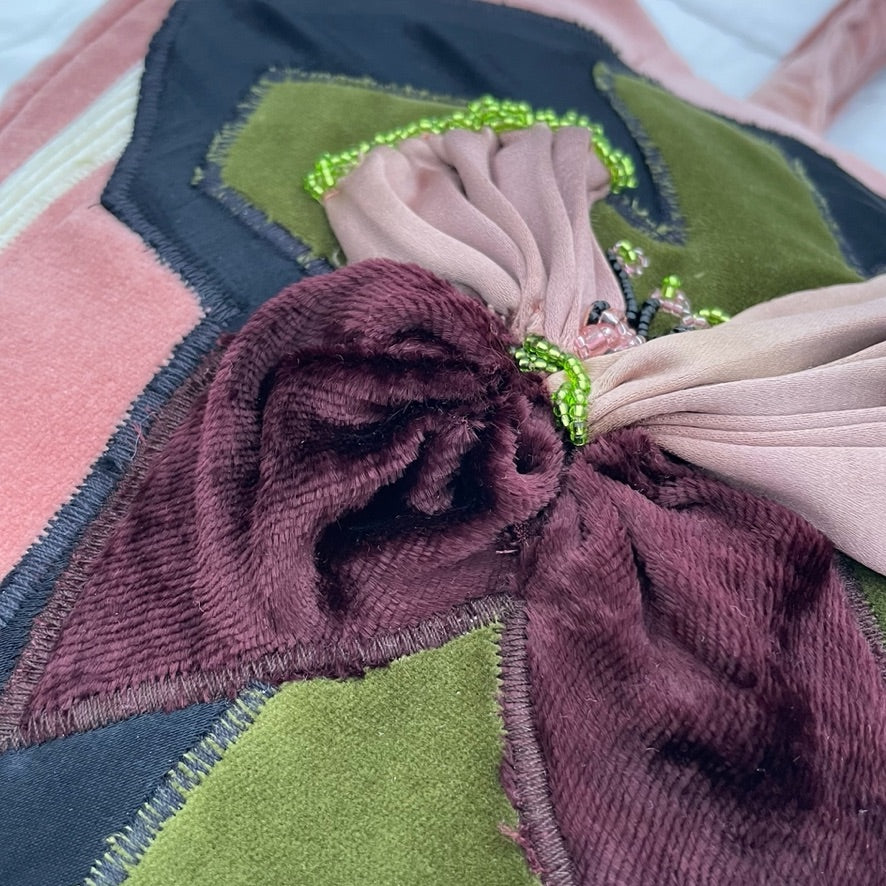 REUSE & RECREATE: The textiles we use in our collections come from a range of sources which aim to reduce our environmental impact. We primarily use vintage and antique textiles. We also utilise salvaged and remnant fabrics from the fashion and interiors industry. As well as dead-stock fabrics for lining.