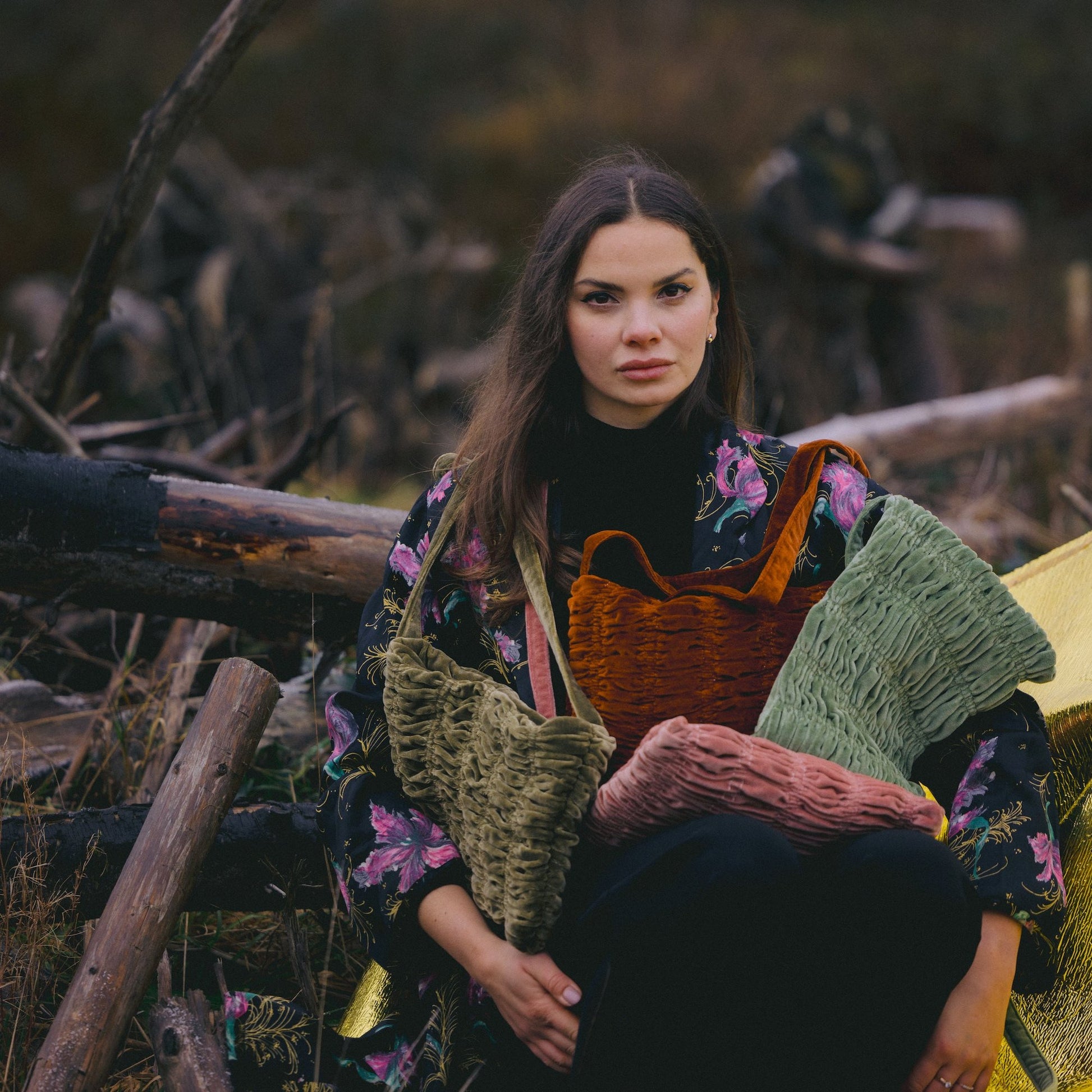 SAGE is crafted from an opulent antique green velvet. It's standout feature is the textured hand-shirred surface, adding interest to its simple yet stylish design.