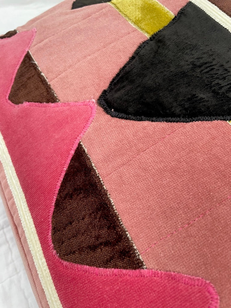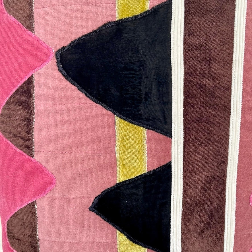Constructed from antique cotton velvets, dead-stock satins, and reclaimed 1950s cotton cord, this sustainably made piece will turn heads with it's graphic lines and distinctive colour combination. Features our signature appliqué and a rich satin lining